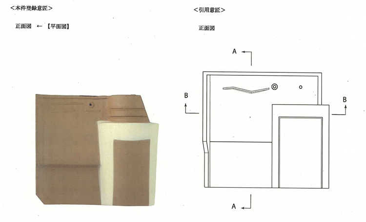 「瓦」について、登録意匠と引用意匠は似ていると思いますか?答えは似ている(類似)と判決されました(令和5年(行ケ)第10066号 審決取消請求事件)。共通点(従来の意匠に見られなかった新規の創作に係る本件コの字模様)が要部であるとして意匠法3条1項3号に該当すると判断されています。